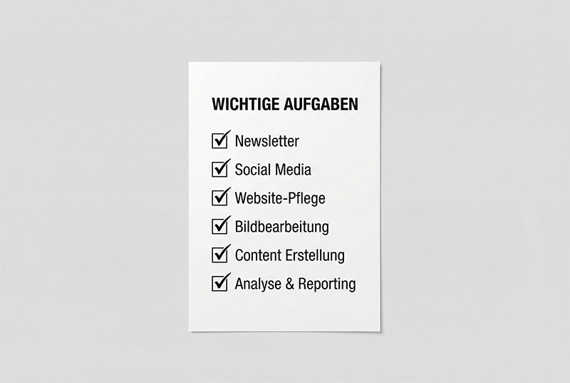 Eine interne Teilzeitstelle für jemanden der Website, Design, Newsletter, Social Media und Strategie beherrscht kostet CHF 4'000 bis 6'000 im Monat. Plus Sozialabgaben, Ferienvertretung und Einarbeitung. Und selbst wenn Sie diese Person finden, deckt sie selten alle Bereiche ab. Bei MIKAVISION bekommen Sie alles zum Fixpreis. Expertenlevel, ohne HR-Aufwand und ohne Sozialkosten.